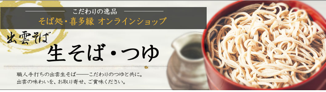 出雲そばは「挽きぐるみ」といわれ、玄そばを殻ごと製粉します。そのため、出雲そばの特徴はよく噛むことにより、甘み、旨味を強く感じるそばです。 喜多縁では、そばを噛んだ時、甘み、旨味に加えてモチモチ感が出るように、出雲産を中心に国産のそば粉4種類を独自に配合し仕上げています。
